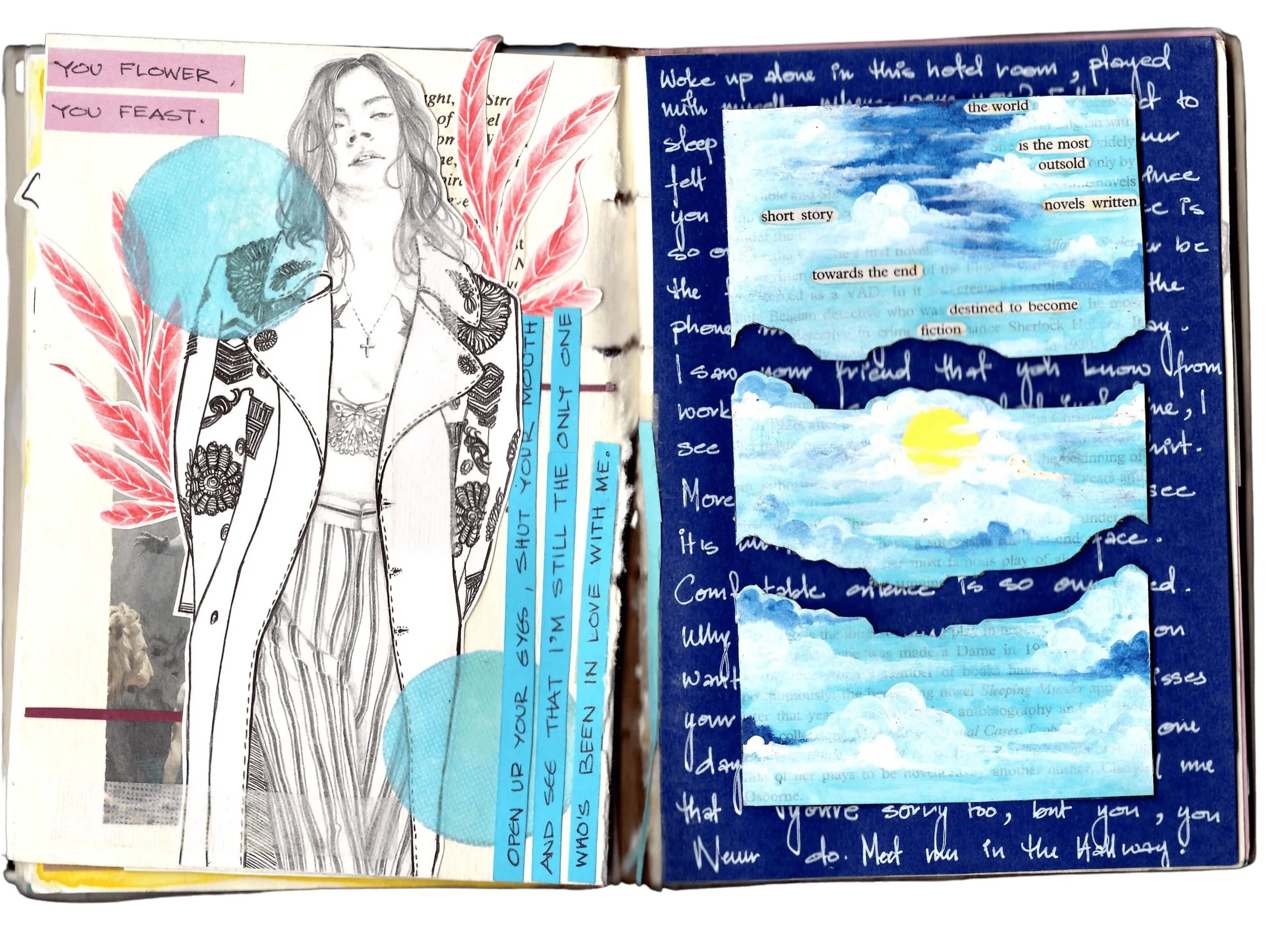 Art Journal During the pandemic I had come to realise that striving for perfection in every thing I created had made it so that I stopped enjoying the process of creating. I started my Art Journal as a way to fall in love with it again. Pretend You Flower, You Feast The Keys to Lost Names Grime The Anatomy of Being Beachwood Cafe Dreams Luna Faces